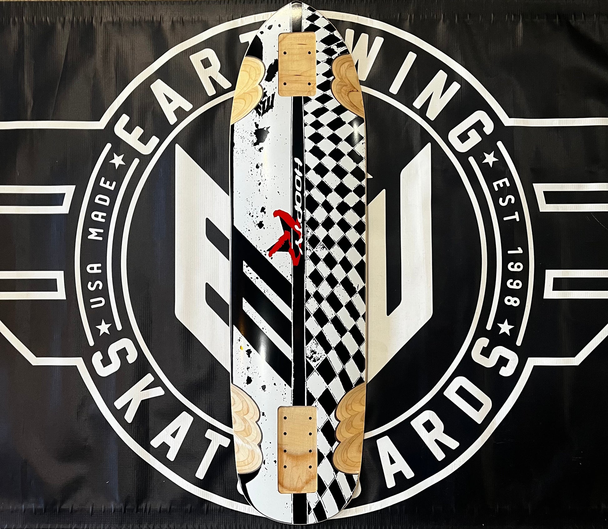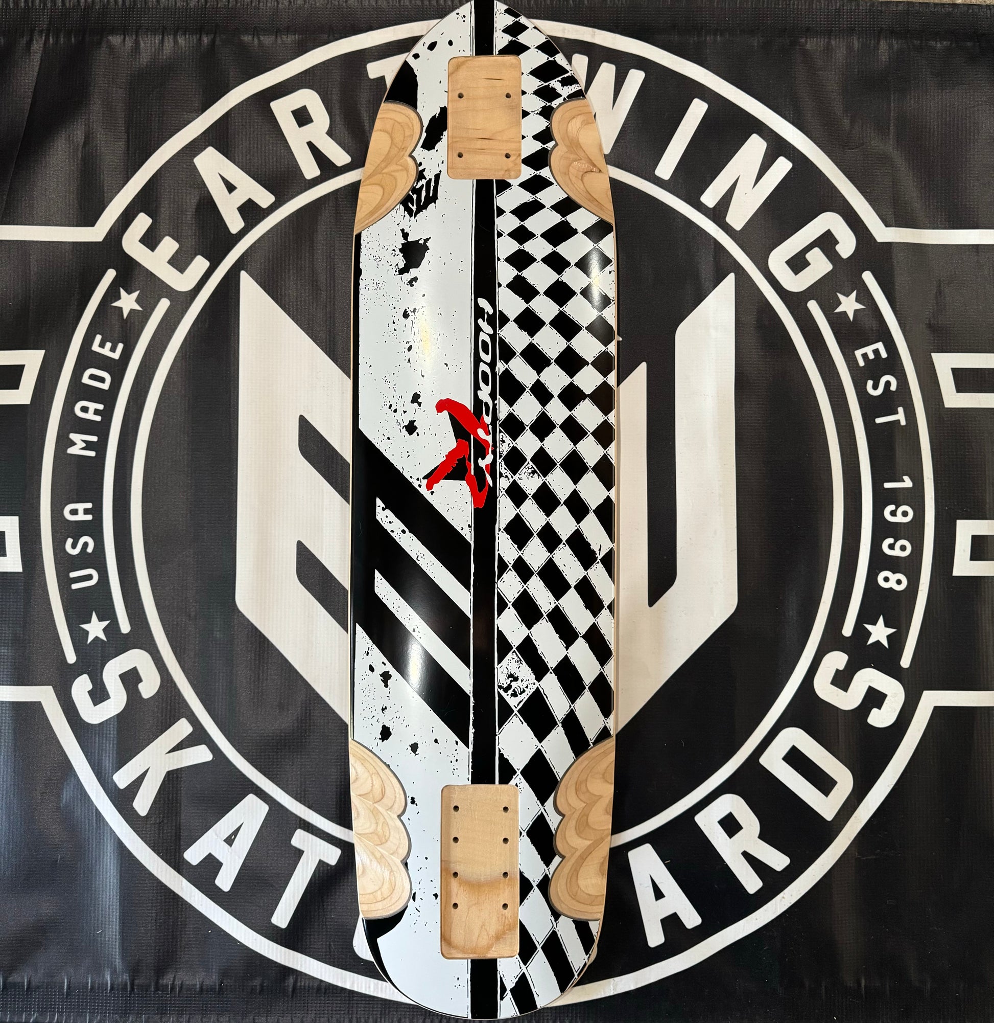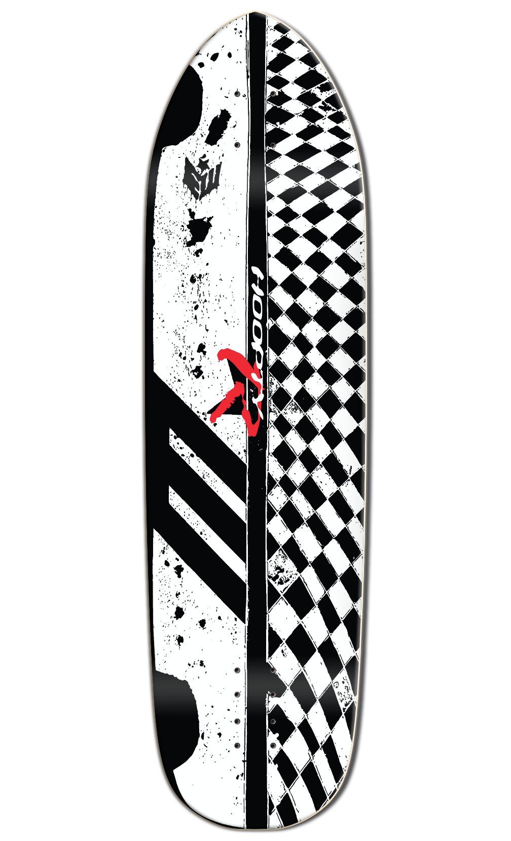 This downhill racing deck is designed for speed and competition! The design is strongly directional and stiff. The dimensions accommodate a wide variety of narrow truck options while the rockered concave and wheel flares are optimized for even leverage and a locked in feel. The extra-long flush mounts allow you to keep any truck mounted level and can easily be neutralized with a 1/8th inch riser if you prefer to ride fully top mounted. The extra deep and long wheel wells mean you can fit bigger wheels with less worry of bite, even when flush mounted.